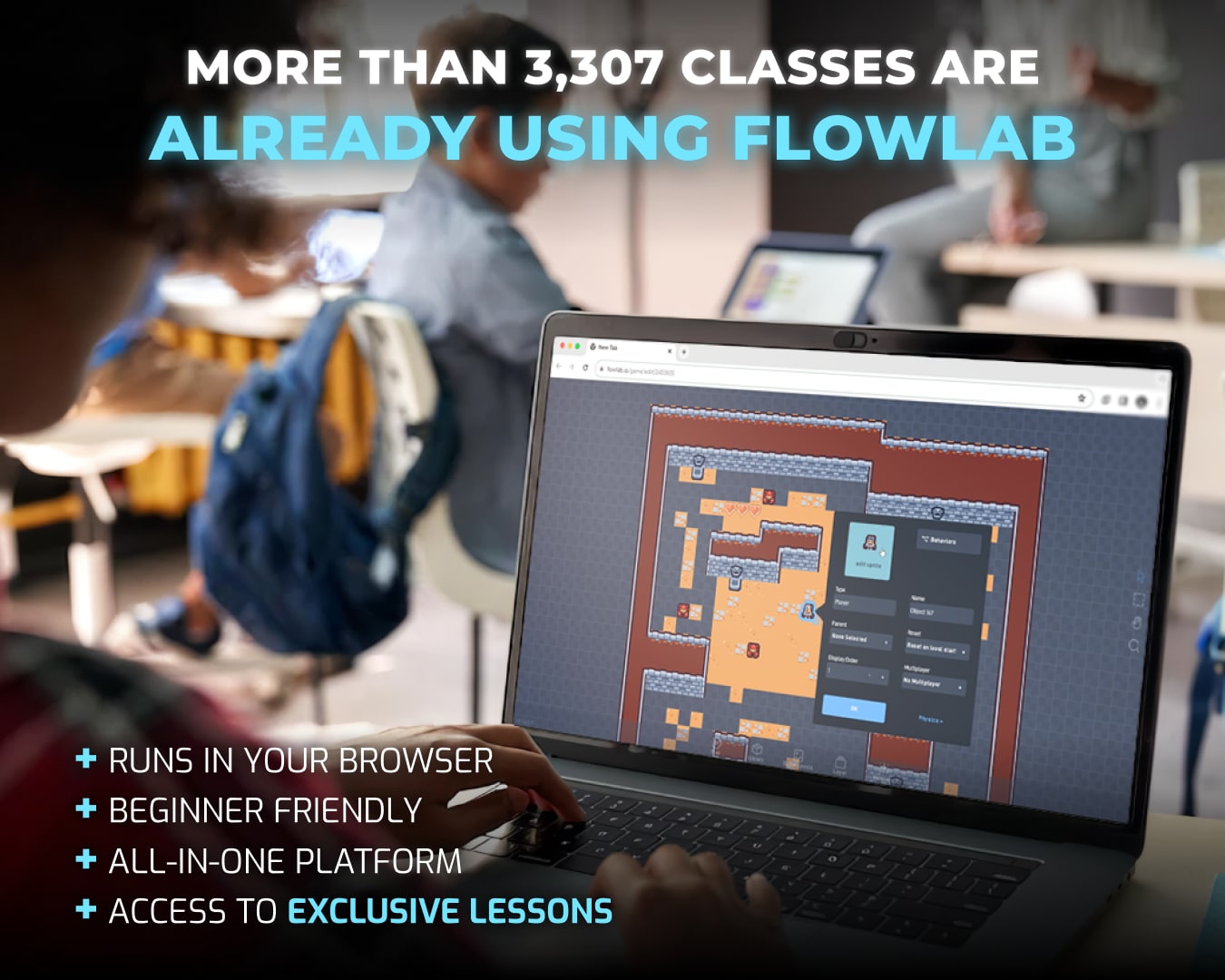 I built Flowlab as a way to introduce game development and programming logic to my own kids. It has since been adopted by thousands of Schools, After School Programs, Libraries, and Summer Camps all over the world who love it.