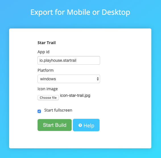 This takes you to the "Export for Mobile or Desktop" page. Here you will complete the fields and